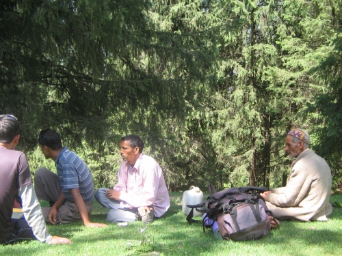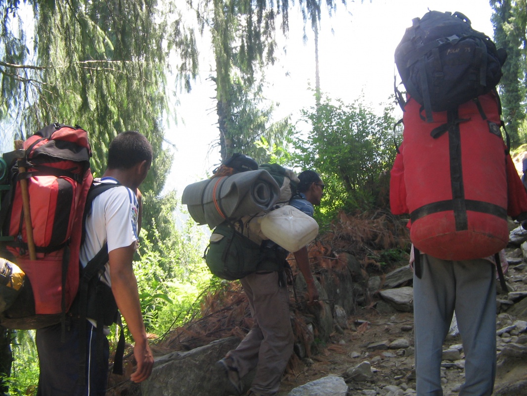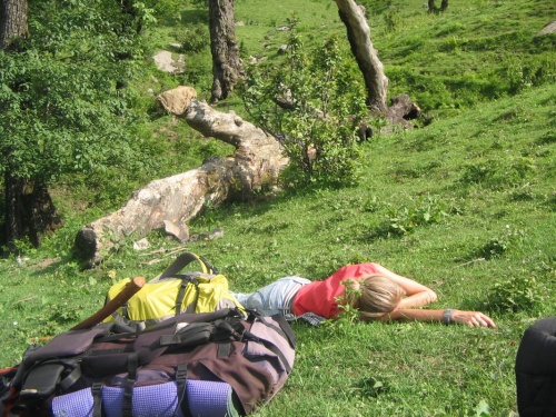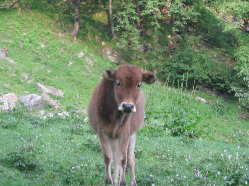 На рассвете пришел теленок,а всякая нечисть,страшась солнечного света,поползла по норам. На второй день я устал и плелся еле-еле,постоянно останавливаясь,присаживаясь,прикладываясь и отддыхая.Красиво,тихо,безлюдно.Через залитый солнцем лес и поляну с разбросанными по ней коровьими черепами.Мимо пасущихся лошадей и горных речек".Где разорвана связь между птицей и солнцем рукой обезьяны.Где разбросаны кости,земляника,да звёзды по полянам" (с) А ребята встретили мужика с лошадью,загрузили его скарбом и налегке ушли вверх,к Chakalani.3 000 м.