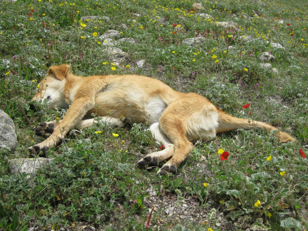 Вьется тропа над пропастью между водопадов,над горными речками и альпийскими лугами,ноги заплетаются в оленьих рогах корней можжевельника. Стойбища собирателей лекарственных растений,вкусный чай,приятно вытянуться на солнышке. Остановились рядом с заброшенной вертолетной площадкой. В камнях резвились красные мыши,по-тибетски zabra.