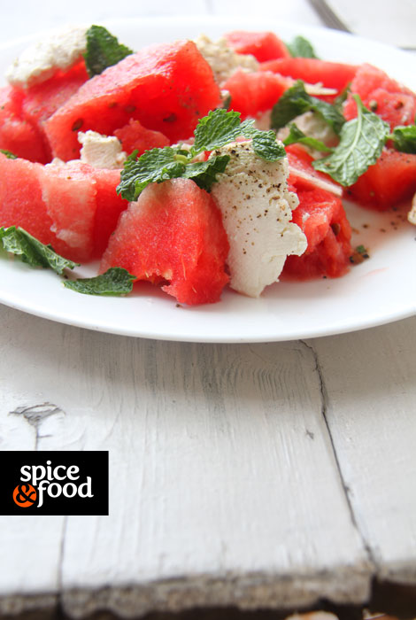 Салат из арбуза и рикотты (или сгущенного дахи)
