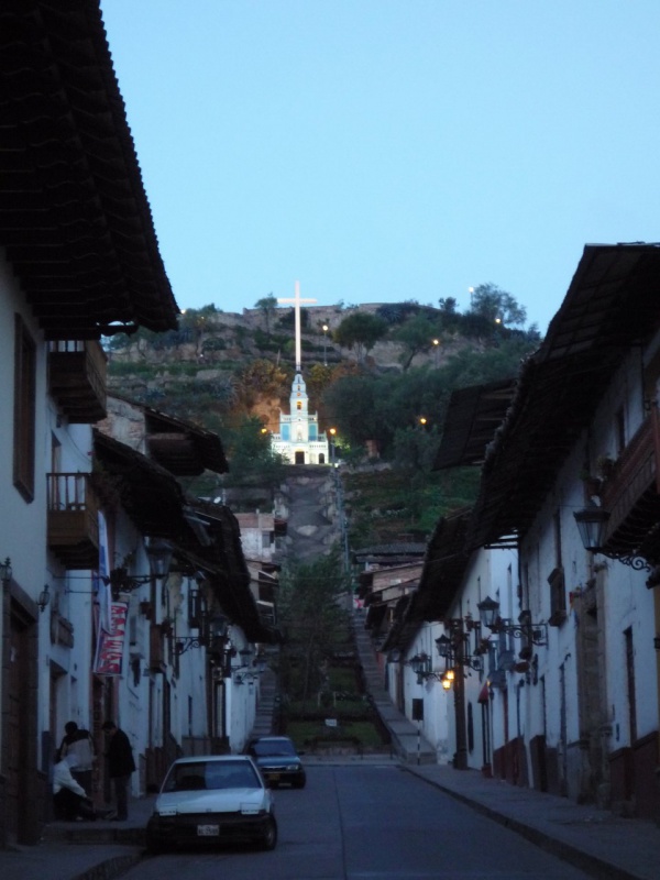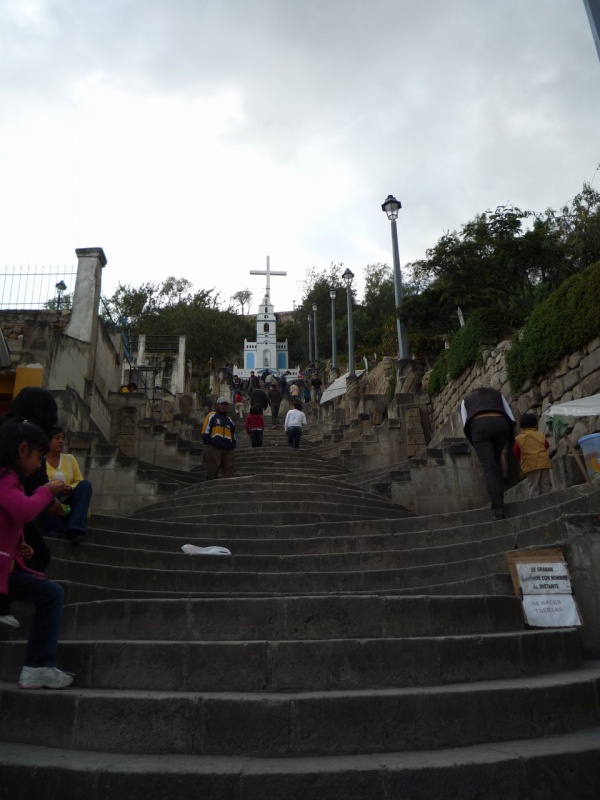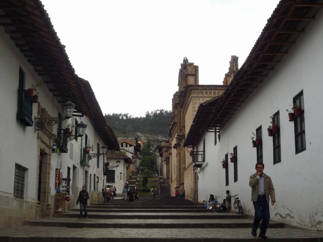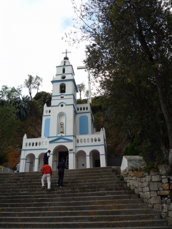 Городок симпатичный и реально напоминает Куско! Но, смотрите сами и сравнивайте, если хотите. (про Куско я уже писала раньше в этом же топе). Сначала поднимемся на мирадор вот к этой церквушке, вот по такой лестнице (см. фотки)