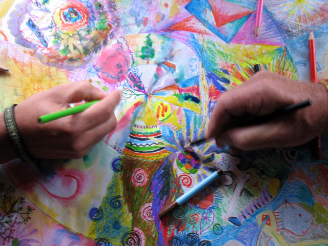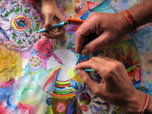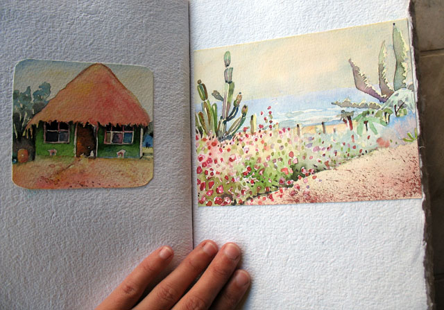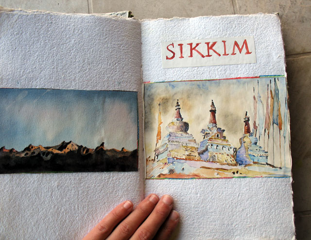 Это было начало самого увлекательного знакомства из тех, какие только случались у меня в Индии. Конечно, было страшно интересно познакомиться с опытным художником (жуть как не хватало профессионального общения), тем более – опытным акварелистом, ведь у меня никогда толком не было возможности позаниматься акварелью, этой особенной техникой живописи. И таки мы познакомились! Сначала я заглянула в патрикову Волшебную книгу, а потом спросила, не дает ли он уроки акварели. Оказалось, дает и даром...