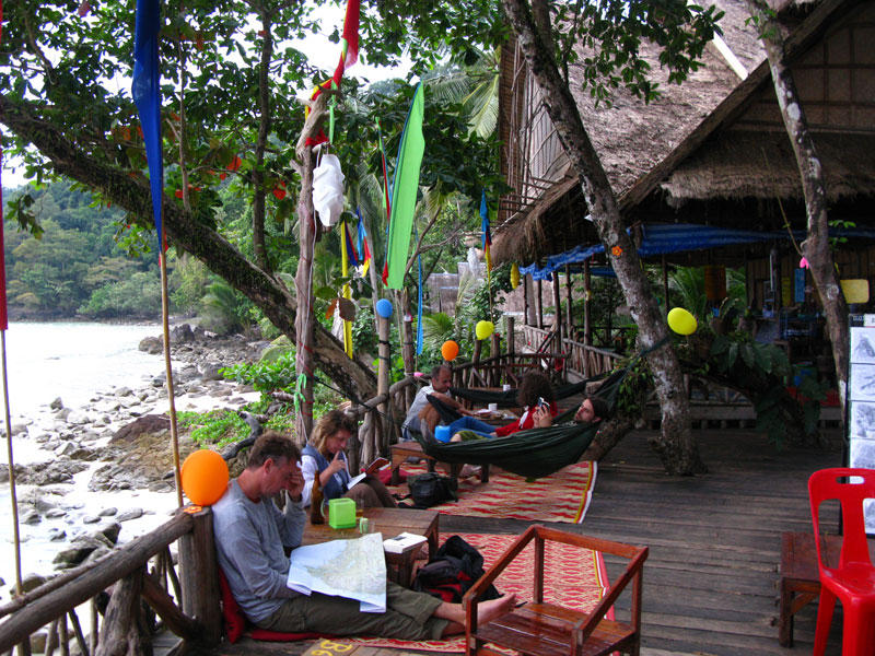 Практически никакой цивилизации, за дорогой вздымается стена джунглей, до ближайшей цивилизации километров пять, до ближайшего туристического бича - километров 30. Можно сидеть весь день и просто смотреть на море и острова в нем, можно гонять мяч по пляжу или беседовать на всякие интересные темы. Можно гулять по окрестным джунглям или исследовать внутренний космосЧего-то мне туда уже и захотелось даже...