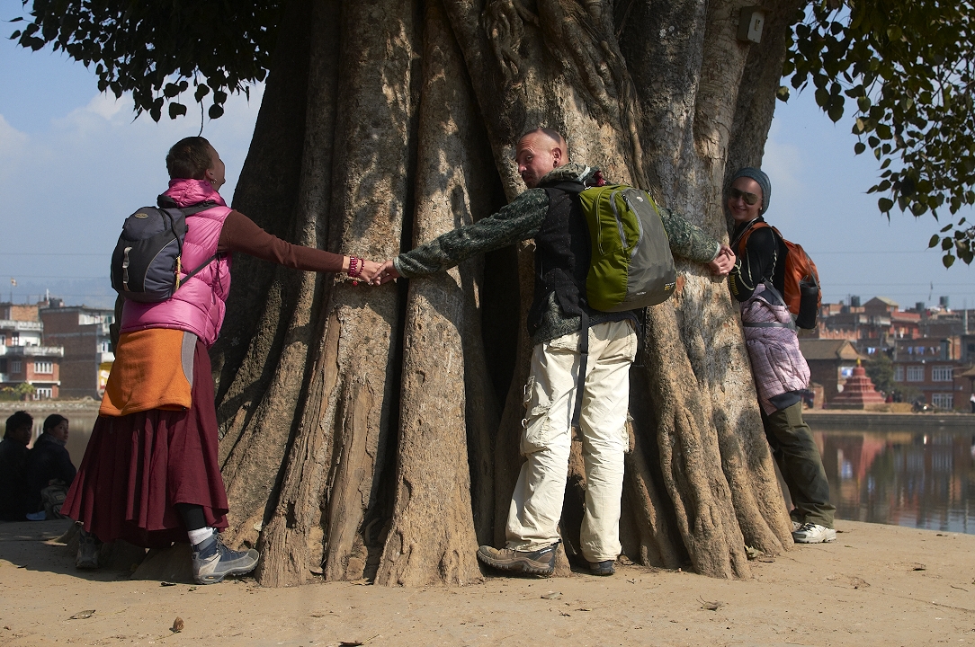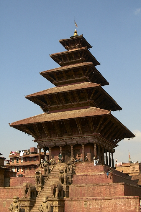 Заночевав в Нагаркоте, в 5 утра неспеша потопали на так называемую "вышку" в 4 км от города, с которой открывается практически 360-градусный обзор на Большой Гималайский Хребет и Долину Катманду. Было дымчато, но некоторые вершины, включая Эверест, удалось разглядеть. Оттуда пошли вниз в сторону Бхактапура и километров через пять поймали автобус. В принципе, можно было и пешком до Бхактапура дойти.