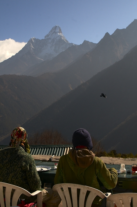 Четкое чувство у всех членов команды - спустились из мира нечеловеческого в мир человеческий. На высоте 4000 метров - кислородный коктейль, тепло и уютно. Опять встретили ребят с Камчатки. Они за день сходили из Лобуче на Калапаттар и обратно в Периче. Идут быстро, поэтому принимают Диамокс от горняшки. Диамокс можно купить в Намче Базаре. Кончать принимать нужно там же, где начал.