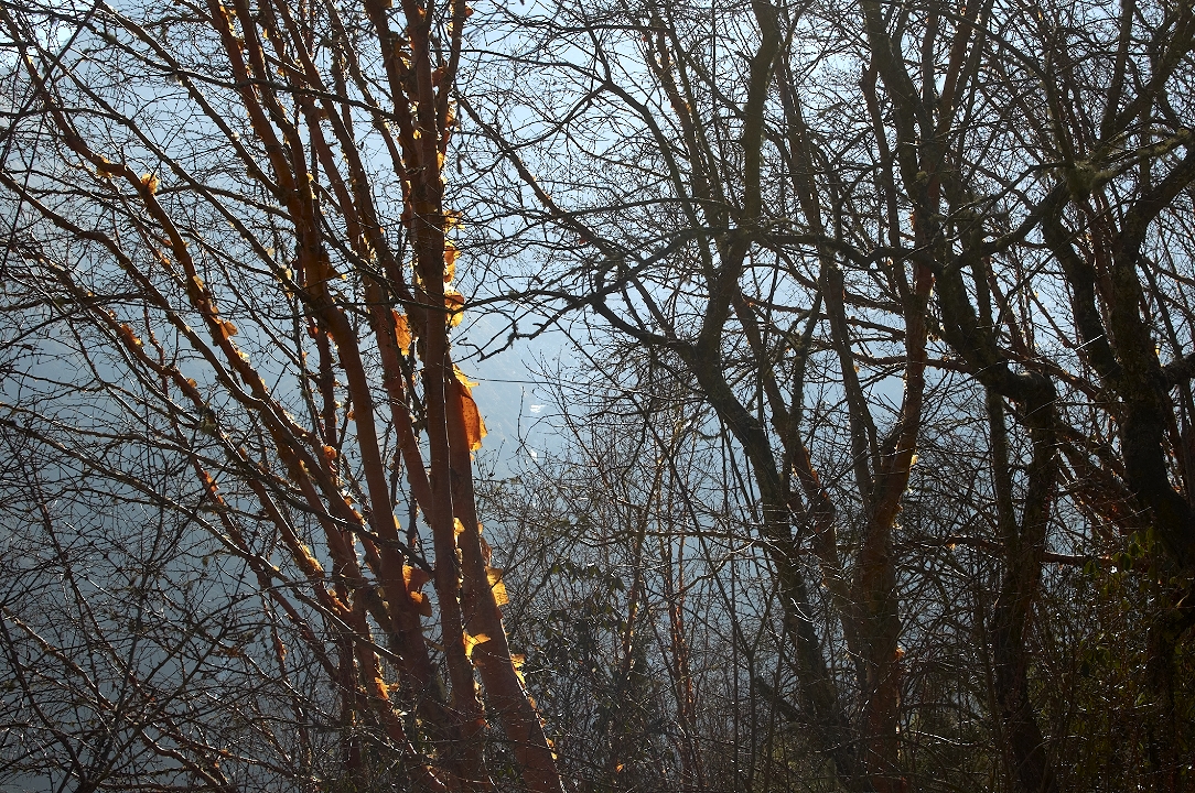 Последний день треккинга. Пасмурно. Первый по-настоящему пасмурный день на треке. Навстречу проходят огромные группы туристов - хорошо, что мы вышли на маршрут пораньше. Нам очень повезло с погодой, а туман и небольшой дождик в последний день только добавили очарования окружающим скалам и лесам. Идем весь день. На закате дня делаем передышку, съедаем яблочный пирог в виде яблочной самосы и смотрим "Люди в черном" на хинди.