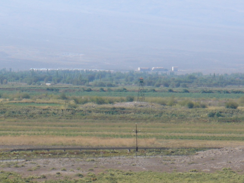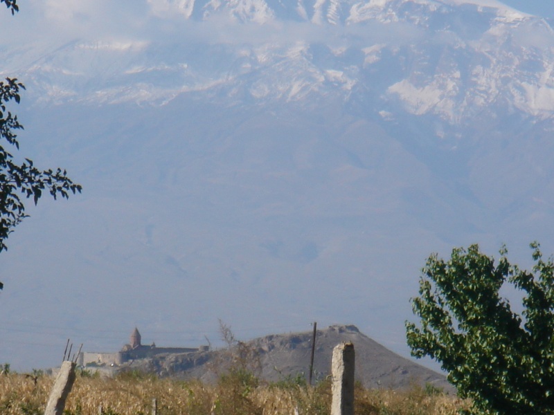 Сам храм, находится, как я уже сказал у самой границы. По ту сторону, чуть правее видна мечеть, с двумя остроконечными вышками (прошу прощения, не знаю, как они называются), а между этими двумя духовными центрами двух религий, прямо у подножья священного Арарата, километры колючей проволоки и армии двух стран. Обидно! Очень обидно было смотреть на мечеть и не иметь возможности зайти в нее. Обидно было смотреть на Арарат и не иметь возможности подойти хоть к подножью. И эта невозможностью обусловлена не только тем, что я армянин и доступ мне закрыт, вовсе нет. Свободный доступ к этой горе закрыт для всех, в том числе и турков. Ведь там расположены военные базы. Правда, можно получить разрешение у властей, на подъем на гору за 1000$, но это уже совсем не то. Стоя на небольшом холме рядом с храмом, только и оставалось фотографировать издали то, к чему нельзя приблизиться, и, надеяться, что хоть в столь важных, как в культурном, так и духовном, да и историческом плане участках, будет открыта дорога для всех желающих, со всех сторон. Эта тема, лично для меня как открытая рана, поэтому пока писать больше ничего о ней не буду, только поделюсь информацией и фотографиями.