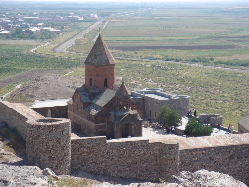 Если двигаться из Еревана к юго-западной границе Армении, то буквально через каких-нибудь 50 км, или за пол часа, можно будет добраться до первого пояса нейтральной территории между нами и Турцией. Непосредственно у самой границы расположен небольшой по размерам, но весьма крупный по своей значимости, храмовый комплекс – Хорвирап (что в переводе значит «глубокая яма»). Его слава и важность уходят корнями в глубокую древность. И хоть Христианство в Армении было принято на государственном уровне в 301 г., оно, было принесено еще самими апостолами Христа, почему церковь и зовется Армянской апостольской, оно прежде, пережило немало гонений и преследований со стороны, как самого народа, так и со стороны царей правивших в тот период. Хорвирап, не стал последним этапом гонений, но положил начало этому процессу. Итак...