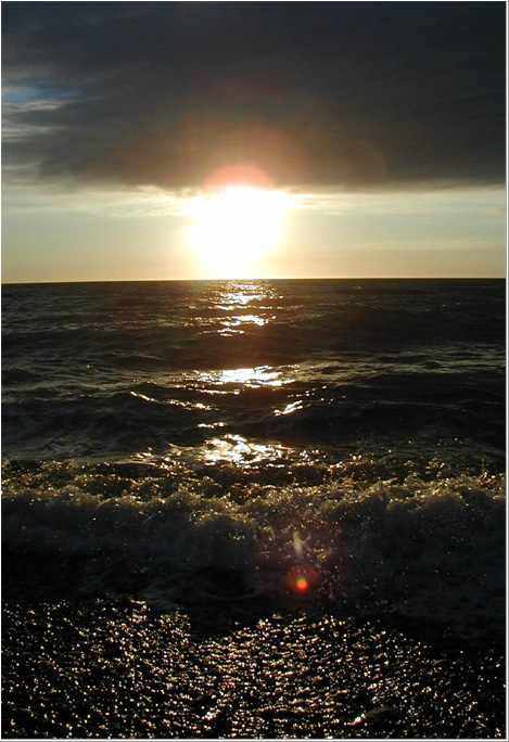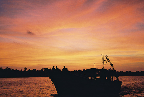 "Закат.Кораблик" - люди стоящие на палубе затерялись на фоне берега, мало воды перед носом катера- точку съёмки надо было понизить.