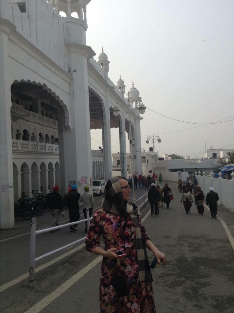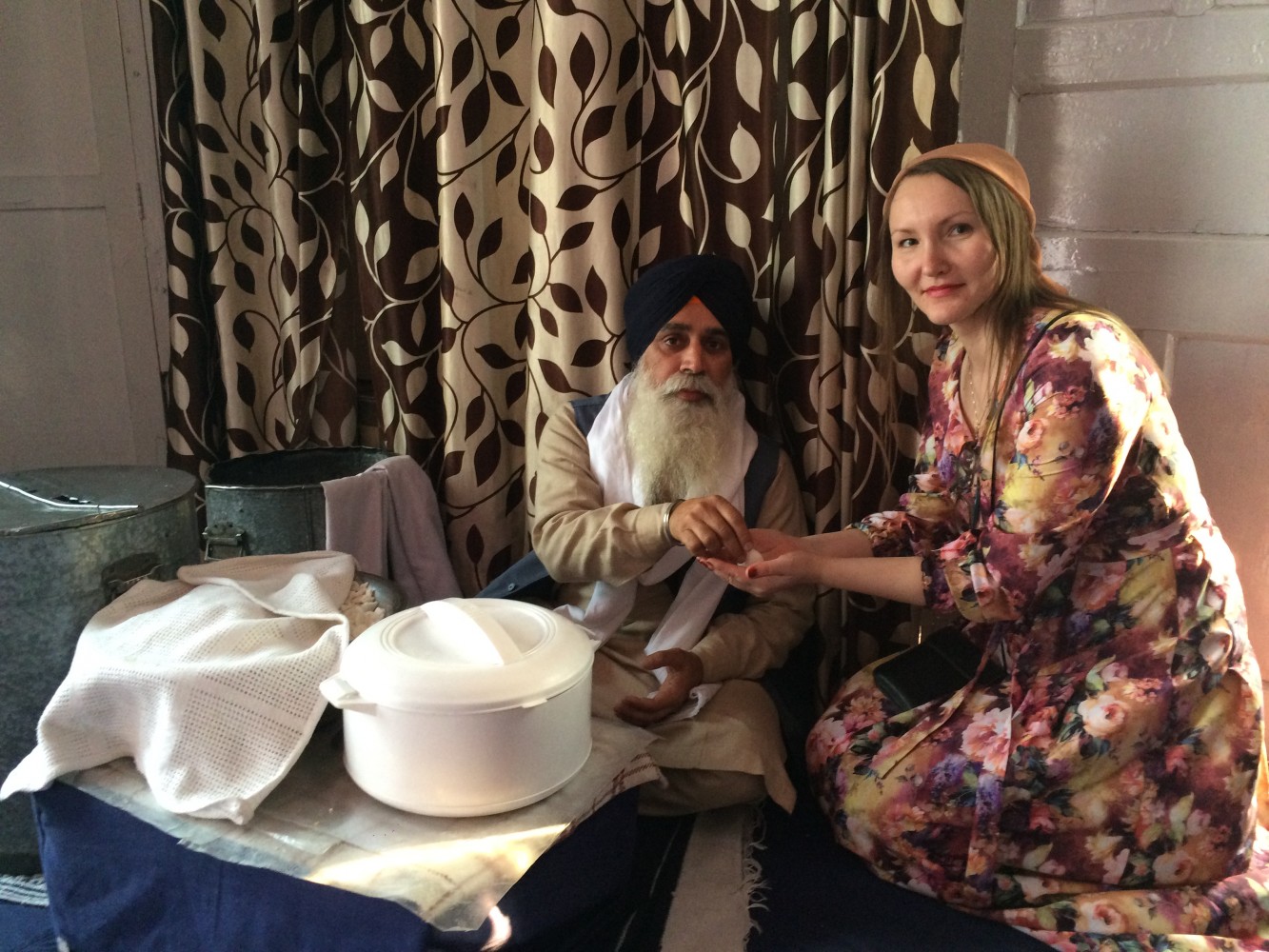 Следующим пунктом поездки у нас был город Анандпур Сахиб, где находится второй по важности храм сигхов. У входа в храм стоит охранник с копьем, а внутри на алтаре лежат мечи и кинжалы, никогда ещё я не видела что бы люди поклонялись оружию. В Дели я уже посетила несколько храмов, принадлежащим различным религиям, но ни в одном мне не было так хорошо, как в храме сигхов...