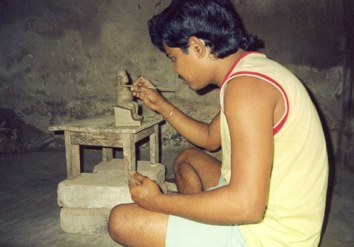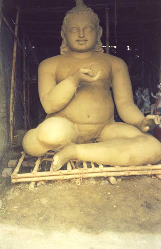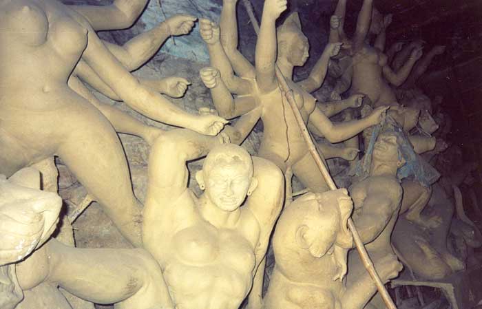 Из пучков соломы делают богов, потом обмазывают, облепливают глиной, сушат и раскрашивают. И потом используют их для религиозных ритуалов и уличных процессий. Использованных богов выбрасывают обычно в речку. Ну, а каких-то, может быть, жгут.