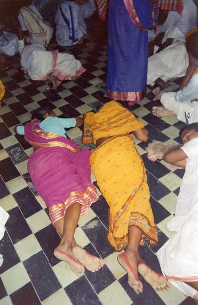 В Навадвипе мне не понравились местные жители. В общем-то, я привыкла к повышенному нездоровому вниманию к белым, но там еще и своя специфика. Дело в том, что в Навадвипу приезжают в основном только кришнаиты. И приезжают раз в году, весной. На них местные жители, видимо, весь год молятся, как на источник денег. Цены на жилье взлетают до предела. Когда идешь по улице, все кричат тебе Хари бол или Харе Кришна. В ответ они ожидают того же самого. В принципе, это не сложно, ответить одному «Харе Кришна». Приезжие паломники кришнаиты тут всем известны тем, что они ходят в странных одеждах, с безумными глазами, с экстатическим выражением лиц и поют Харе Кришна. Отношение местных к ним – это смесь сарказма, издевки и желания с этих «шизиков» сорвать побольше денег. Автоматически всех приезжих белых они считают такими же шизиками. Когда мы идем или едем по улице, очень часто дети, подростки и даже некоторые взрослые мужики свистят, странно подмигивают, кривляются и передразнивают пение «Харе Кришна». Нищие, те вообще вели себя на редкость агрессивно. Мы иногда давали деньги тем, кто вел себя скромно, каким-нибудь старичкам и старушкам у храма. Так другие, более наглые нищие, возмущались, пихали тех, и хватали нас за руки. Ощущение такое, как будто находишься в аду, и мучающиеся грешники за тебя цепляются, чтобы вырваться отсюда. Мрачно. Поэтому мы старались поменьше ходить по городу, и побольше времени проводить на берегу, где никого нет.