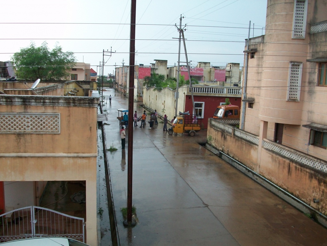 Дней десять назад (на следующий день после Дня молотка) в Индии шёл сильный дождь. Вдруг на улице нашего посёлка послышалась громкая музыка (нет, не громкая - ОЧЕНЬ громкая).