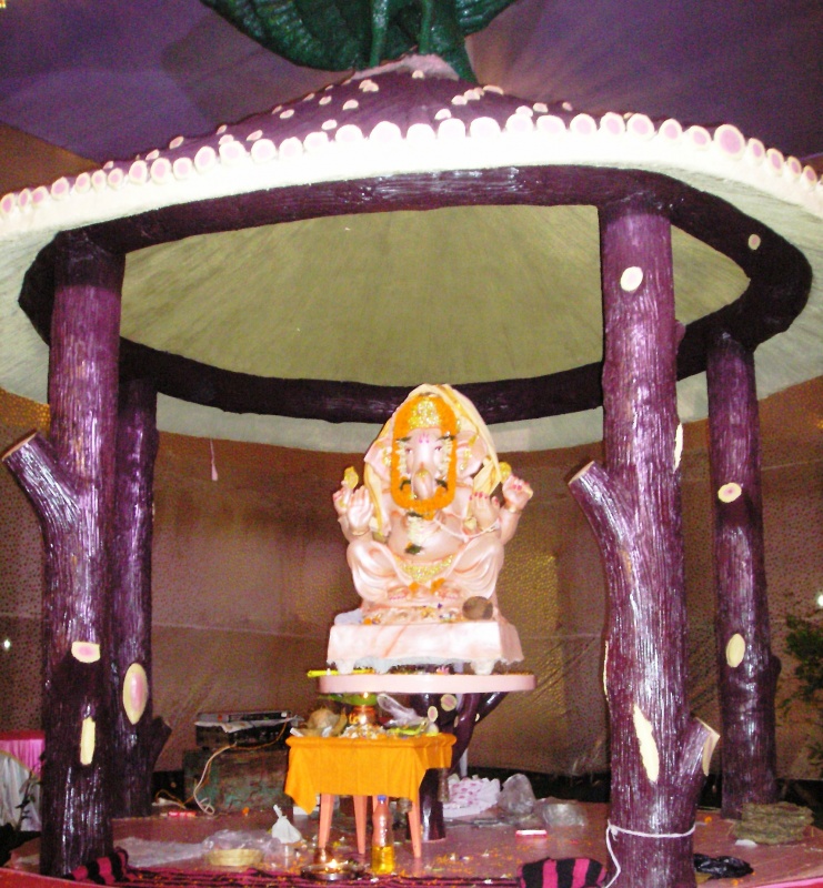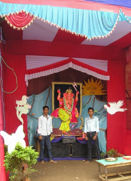 В эти дни, во время вынужденных прогулок по Биласпуру и Райпуру, я непременно заглядывал в яркие шатры, ставшие временным пристанищем бесчисленных скульптурных изображений этого индуистского Бога. Видел, как взрослые, солидные дядьки с почтением подходили к гипсовым Ганешам, шептали что-то, сложив руки молитвенно и отходили со светлыми лицами.