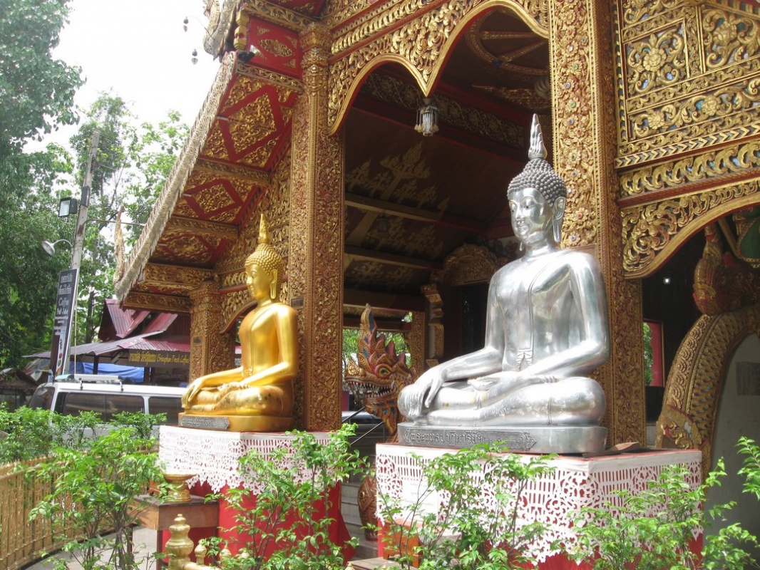 Обнаружил, что на чиангмайщине есть множество замечательных мест в которых я ранее не бывал. Например, Wat Sri Suphan, который вполне можно назвать Серебряным храмом. Расположен он рядом с Вууаляй:) (Вуа Лай) стрит, которая субботними вечерами превращается в пешеходную зону, отданную под субботний рынок.