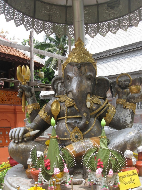 В этом храме работают мастера, изготавливающие серебряные изделия и эти же мастера работают и над осеребрением самого вата, отчего он становится все краше и краше. Кроме всех этих серебряных замечательностей есть еще и древняя стелла с древними письменами и весьма достойная статуя Ганеши.