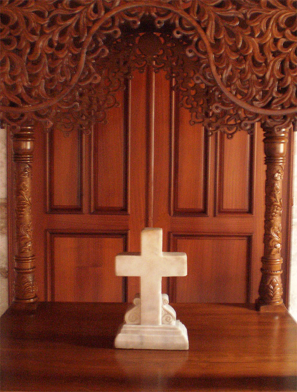 А слева находится скульптура Христа на кресте... Создается оптический эффект, будто фигуру выкручивают... Даже смотреть больно...