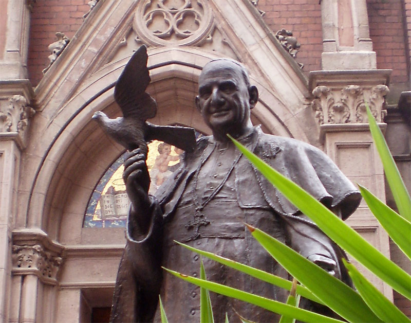 В правом углу церковного двора установлен памятник Папе Римскому Иоанну XXIII, украшенный надписью «Другу турецкого народа».
