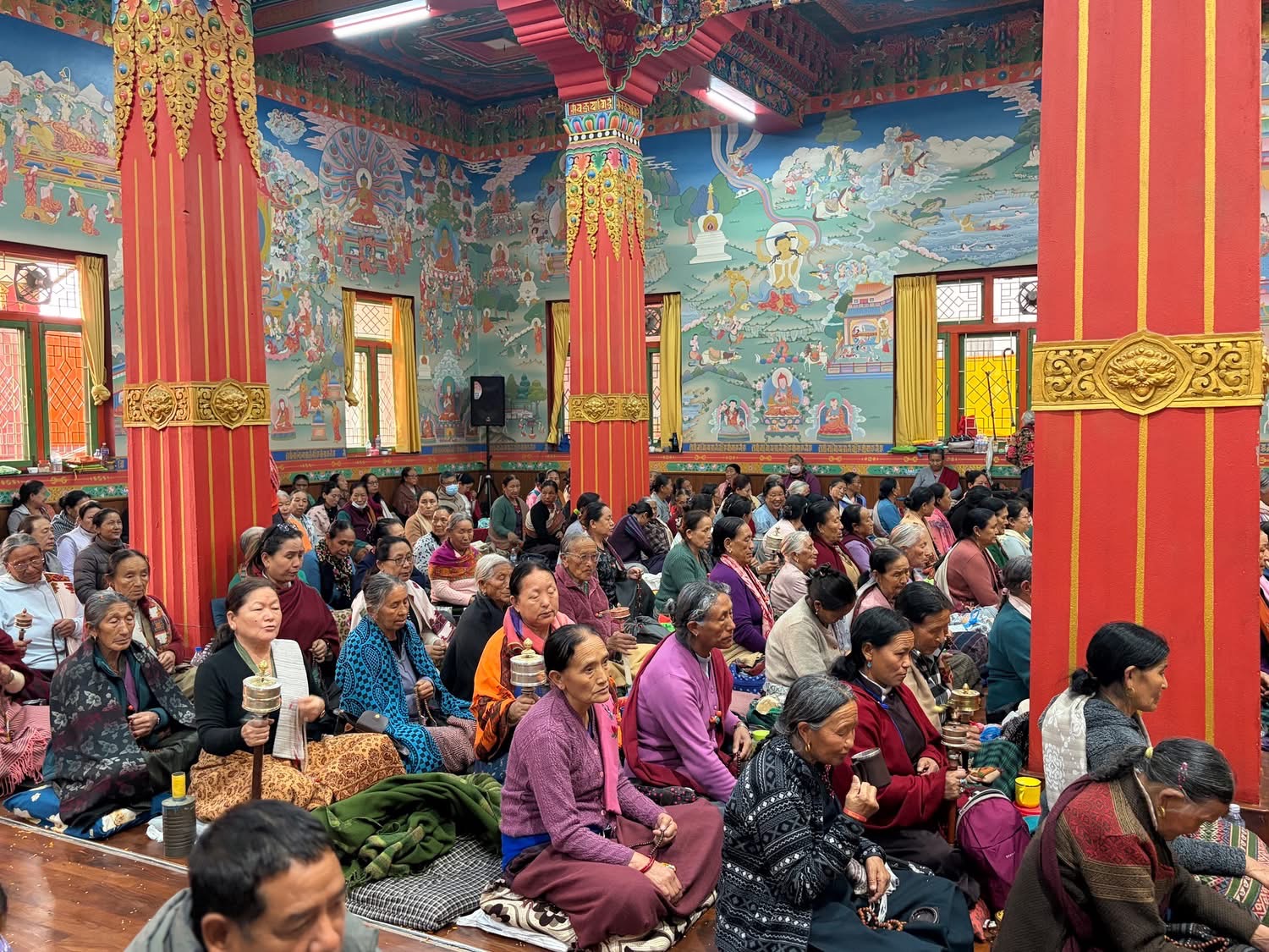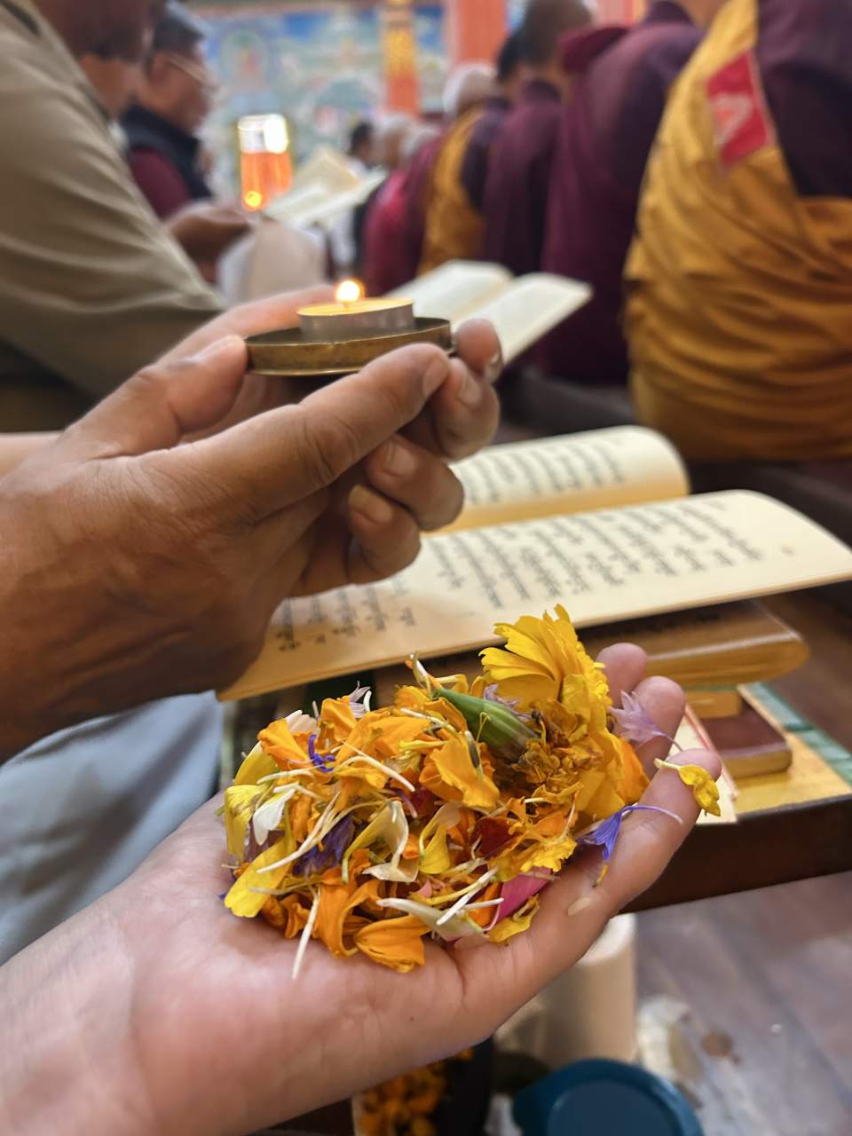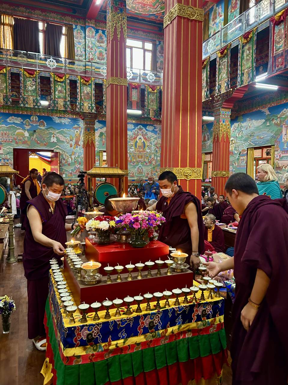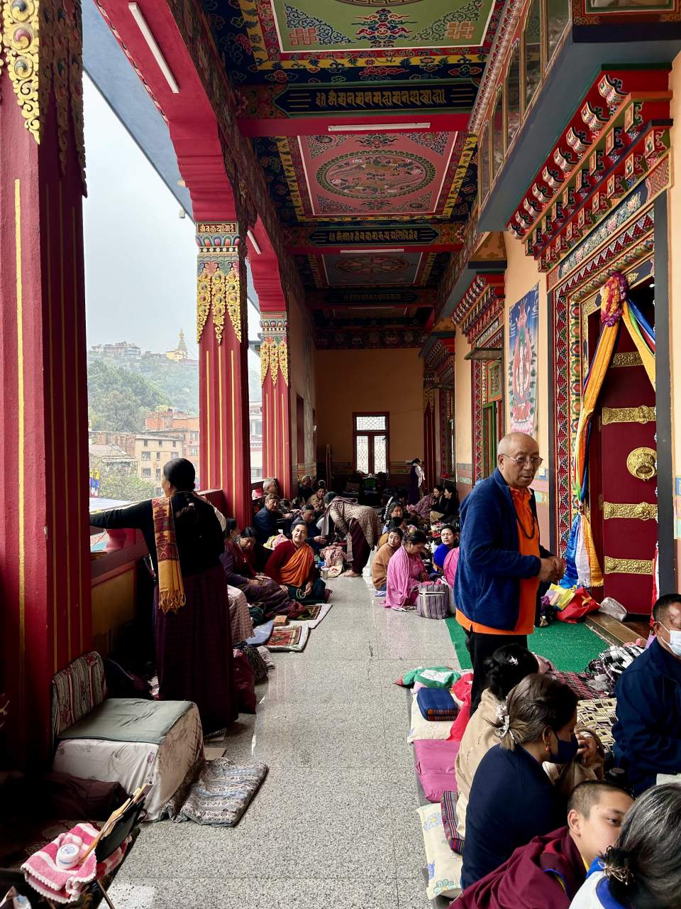 В 9 утра мы попали на вынос манускрипта и благословение текстом. Перед этим была почти часовая лекция на английском о самой сутре, о Нагарджуне, об Атише, Серлингпе (тот, что жил на Суматре), разных учителях, Дхарме, а так же о месте монастыря в истории долины.