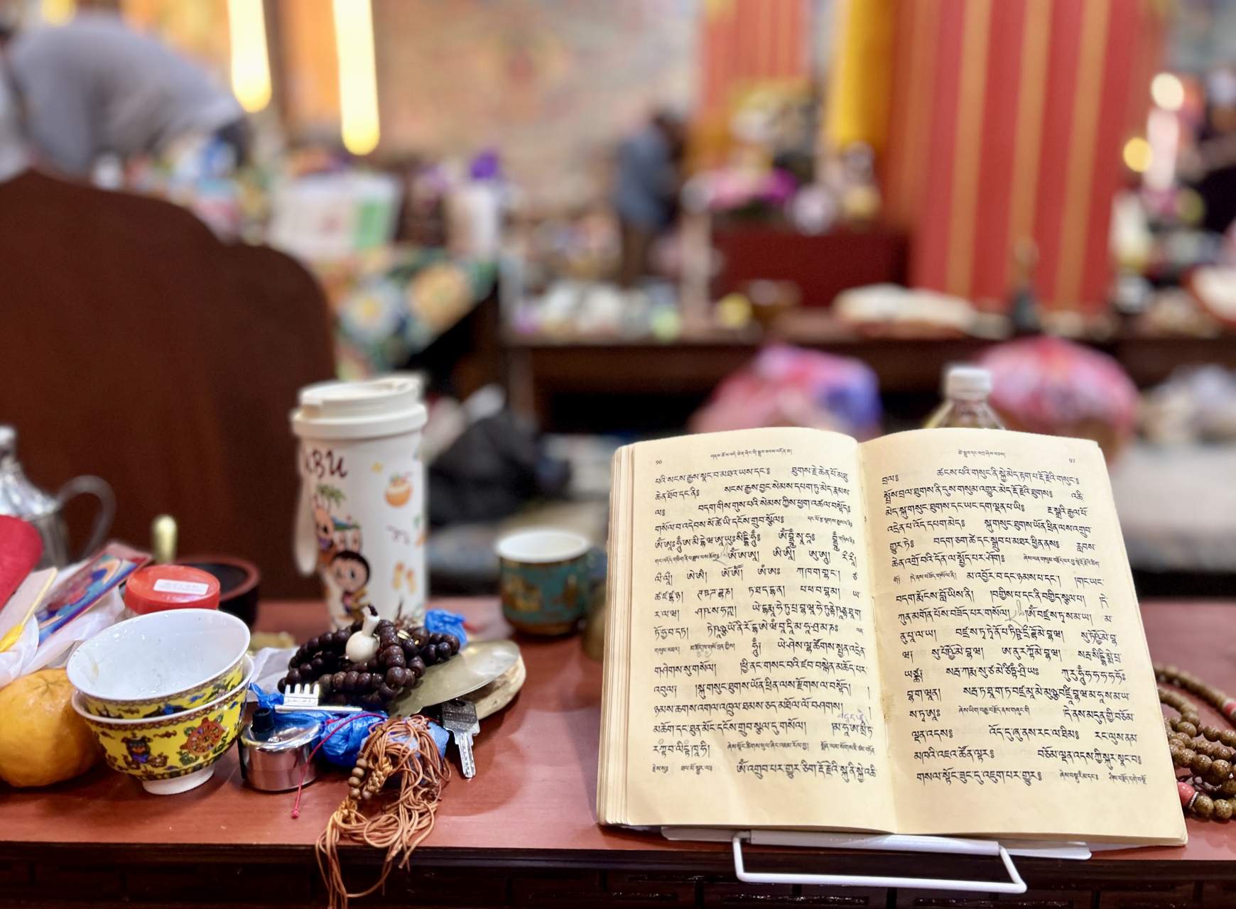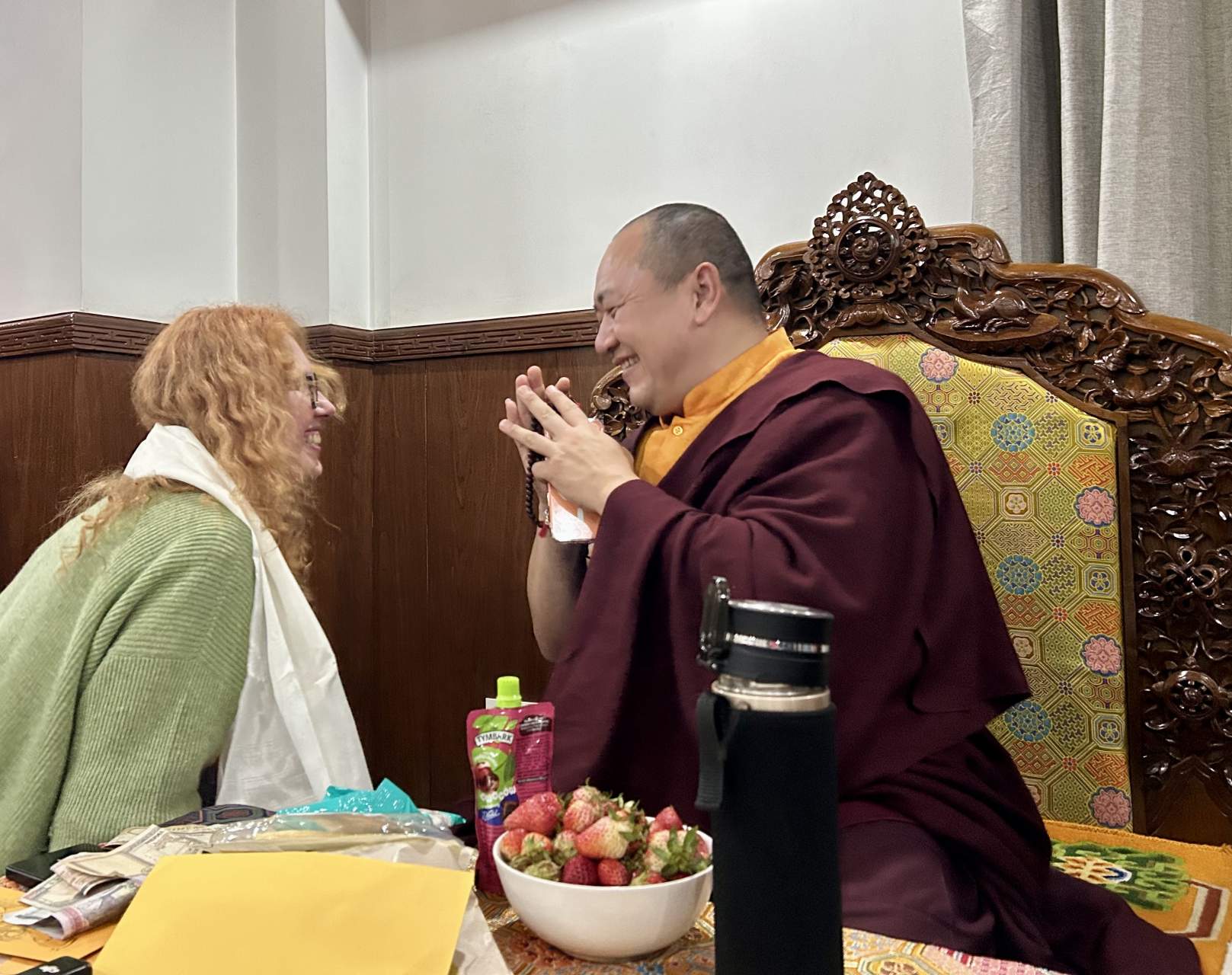 После того, как все вышли, мы попросили еще раз открыть сундук с одним из томов и благославить наши четки текстом напрямую, хранитель сначала отказал, но потом согласился, и в конце спросил: «Are you happy now?".
