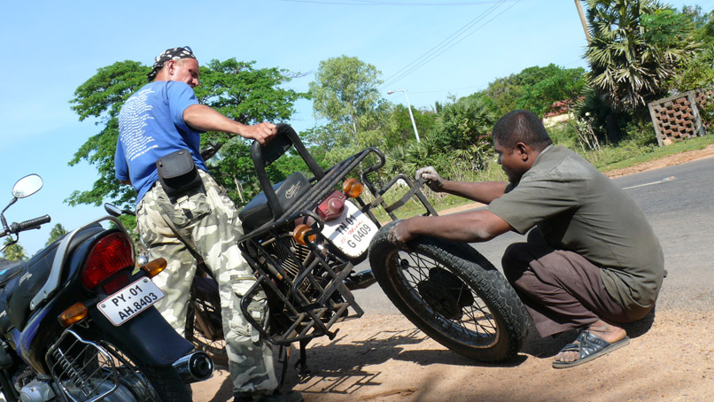при обгоне грузовика срезало сосок на заднем колесе, тормозил двигателем около 200м.