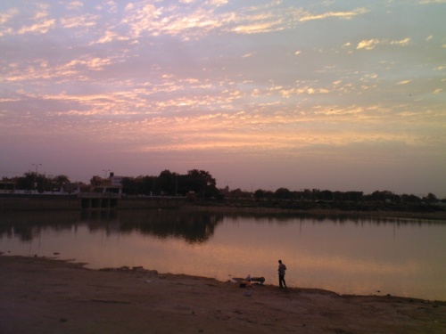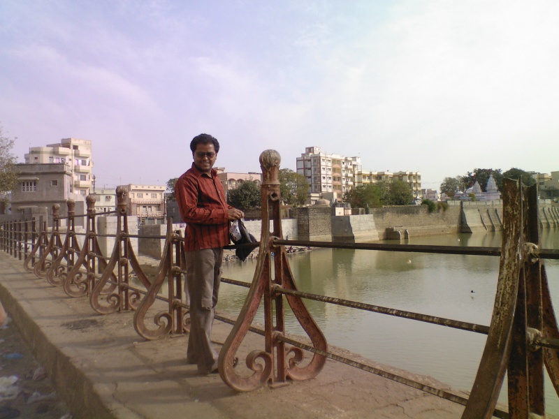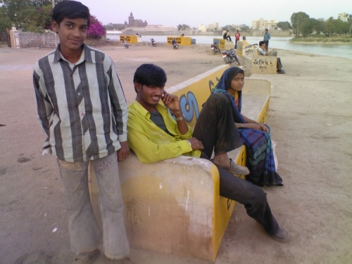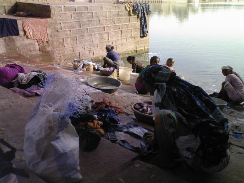 В центре Бхуджа находится озеро Хамирсар.Прогулка вокруг озера заняла у нас больше,чем пол-дня.Нет озеро не большое,просто вокруг озера так много интересного..Как и везде в Индии-где вода,там бурлит жизнь.Кто -то стирает,кто то моется,кто то плавает.Прямо у гхат "гуляют "рыбы,в некоторых местах их так много,что вода от их спинок кажется серой.