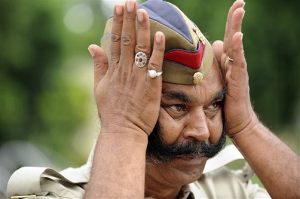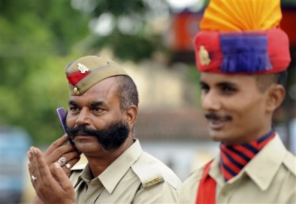 4.5. Дайя Шанкар Сингх, 47 лет, - полицейский с роскошными усами в Аллахабаде. Полицейский участок, в котором он служит доплачивает ему 2$ за его внешний вид.
