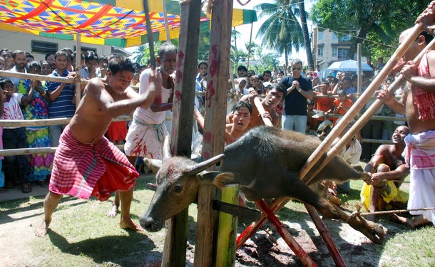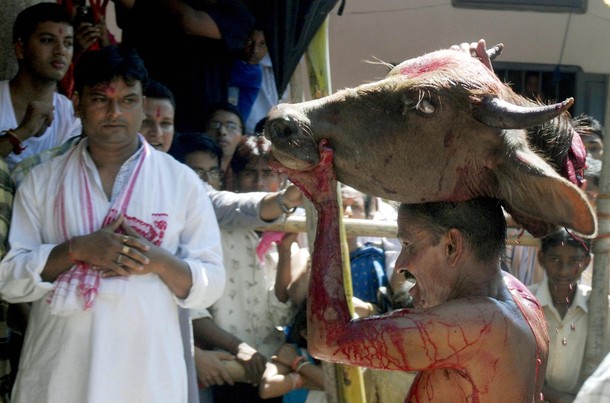 на фото 7-8 жертвоприношение в храме Угратора в Гувахати.