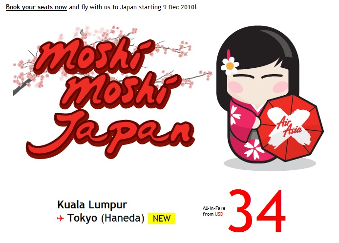 ЭйрАзия с 9-го декабря 2010 года открывает новое направление- Япония, полёты в Токио из Куала-Лумпур!