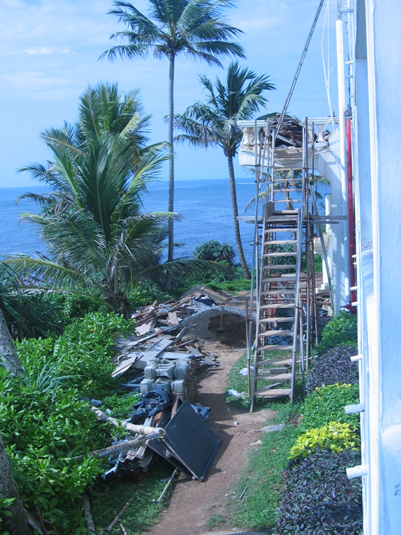 Крытая площадка, что нам предложили для занятий на улице, была великолепна. Но, когда шел дождь и с океана задувало, то она была мокрой. Из-за сильной влажности все на Ланке сохнет долго.