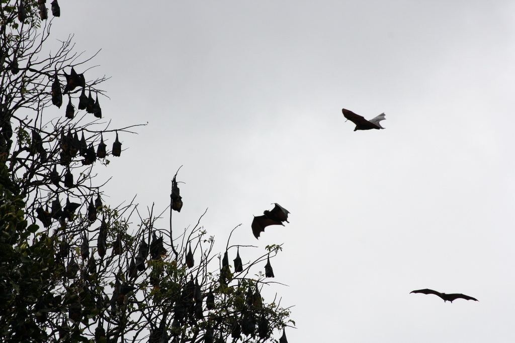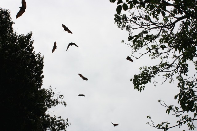 Еще меня впечатлил ботанический сад в Пирадении. Только не флорой, да простят меня "ботаники", а фауной. Там живет огромная колония летучих лис (или они как-то иначе называются?) Эти лисы висят на ободранных ветках деревьев по периметру сада и противно орут. Если их вспугнуть, постучав палкой по земле, они начинают перелетать с ветки на ветку и орать еще громче. Жуткое зрелище. Когда смотришь на это шоу бэтмэнов, то изнутри поднимается какой-то древний страх - кажется, что сейчас одна из зверюг спланирует на своих кожаных крыльях, схватит за шиворот и утащит на корм дитенышам. Как в фильме "Мост в Терабитию". Жуть!