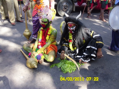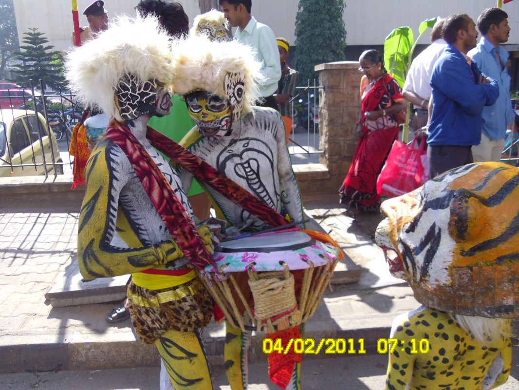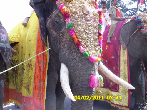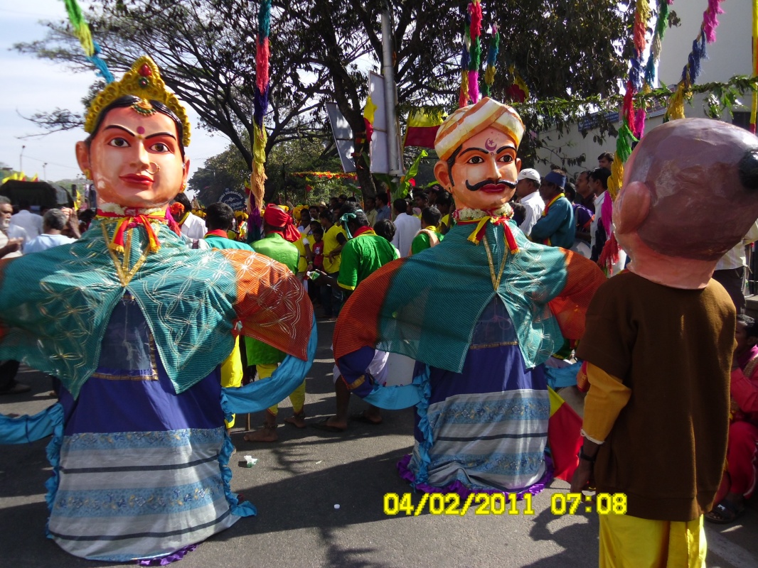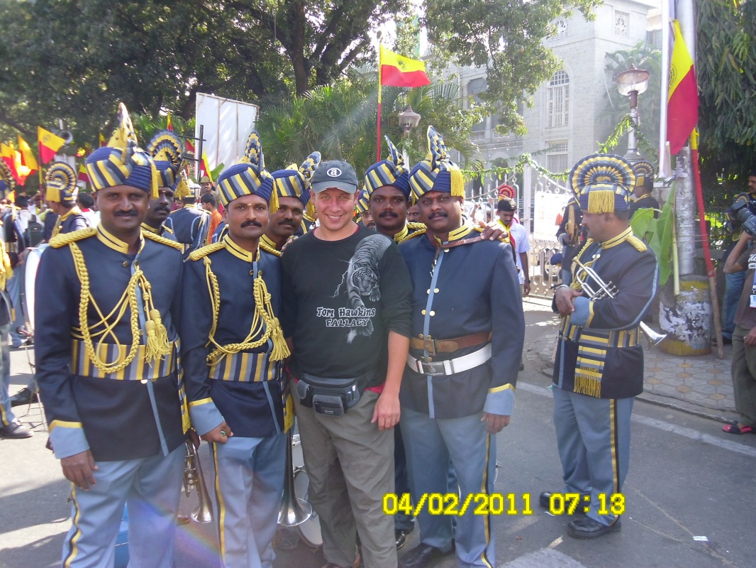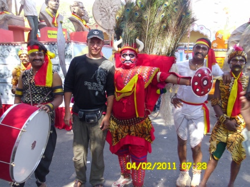 Очень красочный, живой, шумный, эмоциональный и много много еще кокой, получился парад. Там гиганты и карлики, туземцы и тигры, акробаты и танцоры, декорации обалденные и о чудо, взрослые слоны с бивнями. Было прикольно: где я останавливался, местные торопились сфотографироваться со мной, а потом с героями парада.... Силы на исходе, фотик и сотовый сели, солнце припекло.