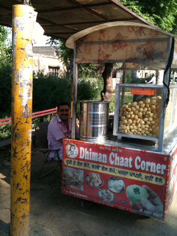 Обратно в Дэли я ехал по Национальному хайвэю №1, избегая Стэйт хайвэев, потому что меня порядком измотала прогулка по горным тропам и хотелось просто ехать и вдыхать Индию всей грудью. NH1 пролегал через штат Пенджаб где живет больше 70% всех сикхов Индии, мне было интересно посмотреть как они живут, хотя иностранные туристы предостерегали меня, рассказывая про сикхов разные страшилки. Сикхи, по крайней мере, те, что мне попадались в Пенджабе, оказались все довольно милые люди. В этом штате повсюду пахнет коноплей, она растет везде, как в Ростове-на-Дону, только гораздо ароматней, мужчины вдоль дорог плетут из нее канаты, а женщины сушат на разделительной полосе коровьи какашки, чтоб потом лепить из них, причудливой формы домики на обочине. Двое бородатых парней в дастарах на голове, ехавшие на Энфилде по встречке, специально развернулись, когда я остановился перекурить, подъехали и объяснили мне что подмигивать не очень хорошо (я им подмигнул проезжая мимо), меня могут не правильно понять, почему именно, объяснить у них не хватило английского. Там же меня угостили очень вкусными шариками, наполненными овощами, острыми специями и соусом, отлично утоляют голод и жажду, их продают прямо вдоль дороги. Парни в дастарах на голове посоветовали заехать в город Чандигарх, довольно красивый современный город, соседствующий с жилищами из какашек. В Чандигархе останавливаться я не стал, солнце было еще высоко и я надеялся переночевать в Нью-Дели на Мэйн-Базаре. В Пенджабе я видел девушек, сидящих вторым номером, верхом на спорт-байке, а не свесив набок ноги, как большинство женщин в Индии. NH1 видимо еще не достроен, местами дорога двухполосная, а местами приходилось съезжать на грунтовку, но в общем для Индии, да и по российским меркам, очень достойная трасса. Спрашивать у местных, где Дели с ударением на первый срок бесполезно, они не знают, надо спрашивать, где ДелИ.