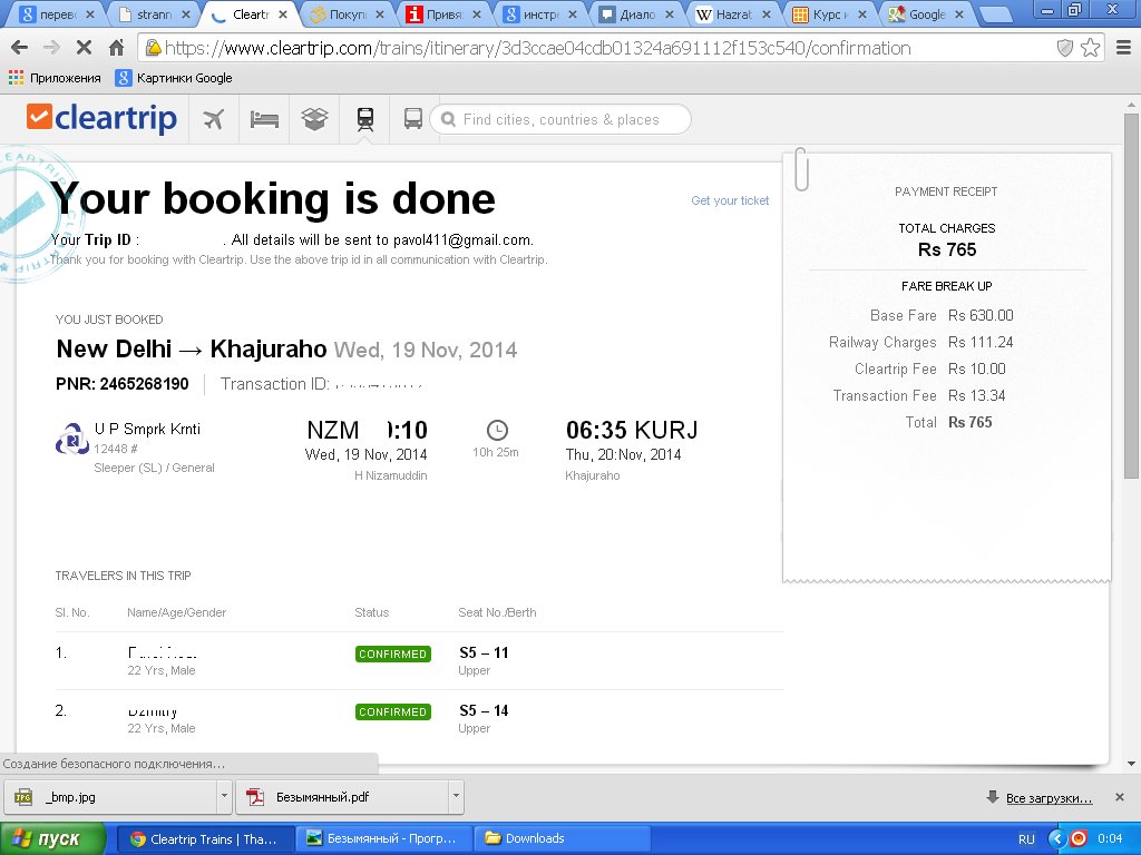 Вся Индия › Привязка Cleartrip к IRCTC. Помогите! |