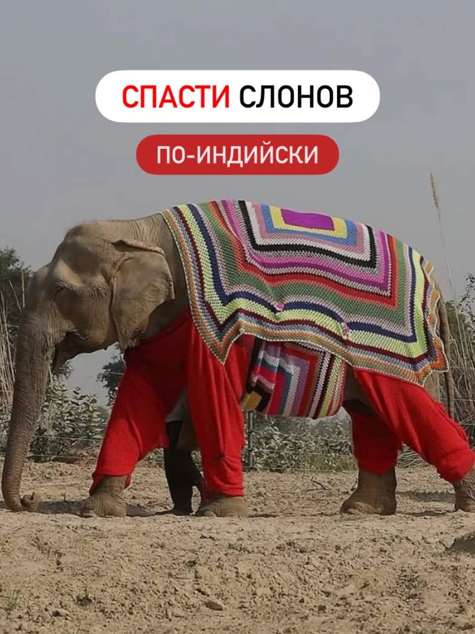 🐘 В индийском городе Матура в центре для ухода за слонами женщины из соседних деревень связали для спасённых животных крупные шерстяные свитера‑«пижамы», чтобы защитить их от болезней.