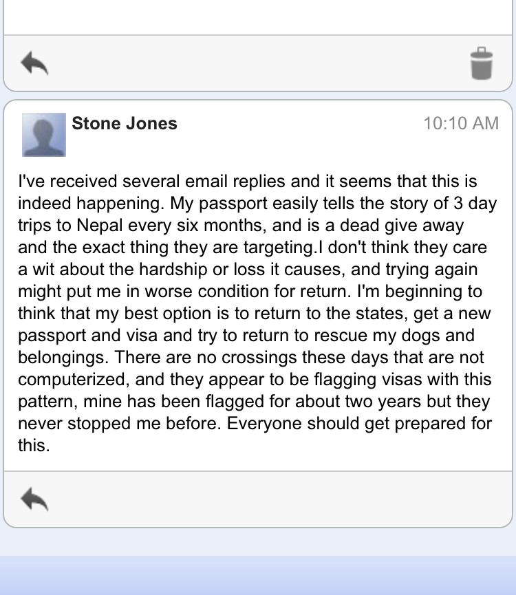 Сегодня получила письмо в свою местную дарамсальскую группу. Американец с 10 летней визой не может в'ехать из Непала.