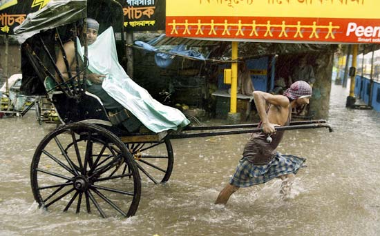 Кстати да, кто думает, что велорикша - это эксплуатация, поищите в Калькутте настоящих рикшей, то есть бегающих с оглоблями в руках. Вроде они еще остались. В сезон дождей им нет альтернативы.