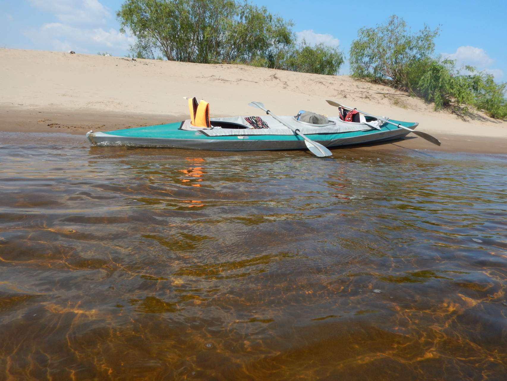 В конце июля садимся мы с подругой в байдарку, кладем туда палатку, спальники, запас продуктов, берем в руки весла – и начинается наш путь по красивой-красивой душевной-душевной великой русской реке. Плаваем обычно вдвоем. Иногда втроем, т.к. байдарка трехместная, но втроем тесно, и вместо третьего человека чаще всего в байдарке лежат наши вещи и продукты.