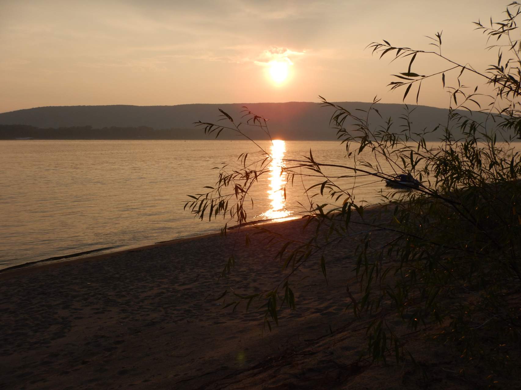 ...Выполнив и обязательную и произвольную программы, я сидела возле палатки и смотрела на Волгу и Жигулевские горы на другом берегу. Внизу у их подножия светились огоньки, отбрасывая на воду короткие серебристые дорожки. Горы вечером черные. У нас нет такого, как в Непале или северной Индии, где по склонам разбросаны огоньки, и диву даешься, как высоко в гору забрались отдельные одинокие домики. У нас всё не так. Склоны Жигулевских гор крутые и поросшие густым лесом, и домики только у подножия, наверху их нет.