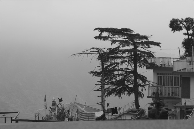 Утром, пресытившись ощущениями жизни на главной дороге напротив монастыря (гонг в 6 утра – романтично, но спать мешает), я отправилась на поиски своего идеала. Во-первых, никаких индусов и тем более кашмирцев, которые заполонили здесь полпоселка. Только тихие приличные тибетцы, способные мыть посуду, стирать простыни и вообще тихо пить чай. Прошла, заходя в улочки и нечистотные переулки по 50 см шириной, почти и весь Гандж. Без захода в Багсу. Наверх поднялась до окончания застройки, до института альпинизма и буддийского центра. Пока меня не погнала стая злобных макак. Лес красив. Но загажен изрядно. Наверху есть гесты среди деревьев, и в тишине. Только прогулка по лесу из-за количества мусора напоминает променад по Филевскому парку. Отели, отели, отели...жилых домов меньше.