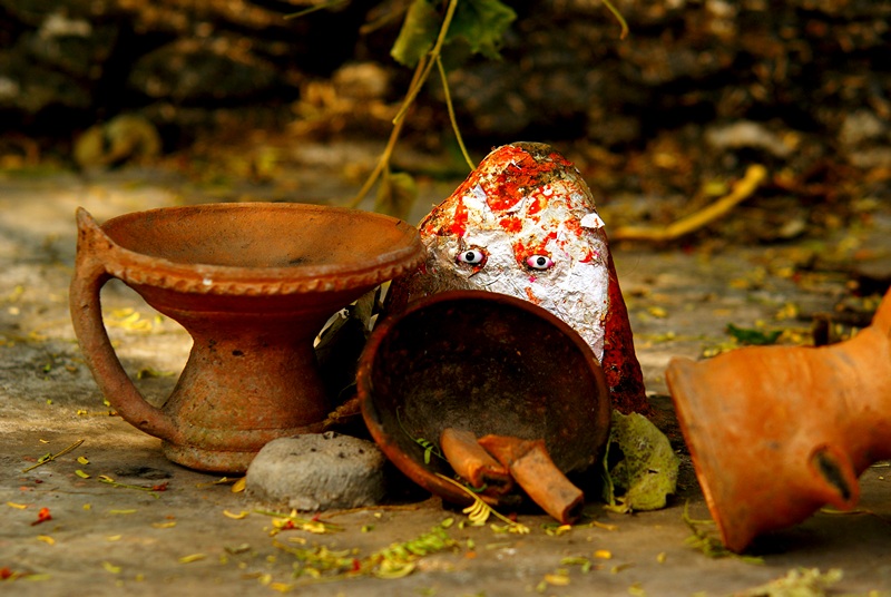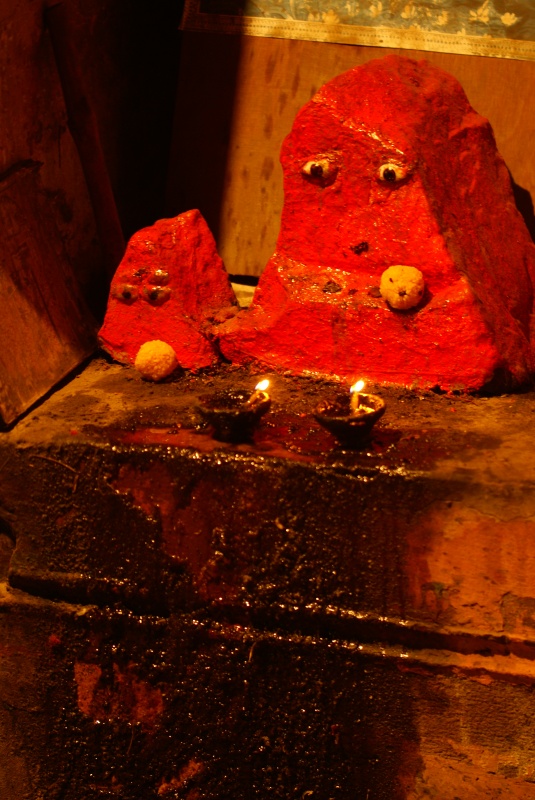Крашеные оранжевым камни (без глазок) повсеместно встречаются в Мадхья Прадеш. В сельской местности - под деревьями, у обочин. Их можно видеть при храмах Рамы, Шивы и др. богов. Два камня часто символизируют Мать и Отца (Мата-Пита). Группа из большего числа камней может быть связана с культом предков и природных духов (якша).