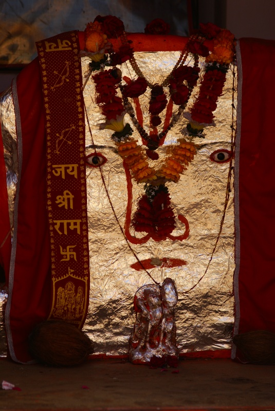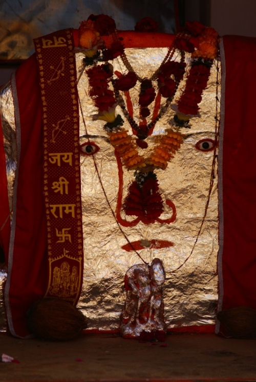 Я вот еще фотографию с ленточкой прицепил, может кто умный прочитает, может надпись внесет какую-то ясность, хотя подозреваю, это Вишну, там и лук подобающийЮ тилака и все такое. Правда, когда я спрашивал местных в селах возле Удайпура по поводу таких же, но с трезубцами, мол Шива? Говорили - "нет!", я показывал три пальца, мол, Шива же! Они в ответ три пальца и Шива, потом показывали на камень и махали головой "нет, не Шива!" Второе фото, уже из сельских окрестностей Пушкара. (пардон, за качество фотографий, в темноте дело было)