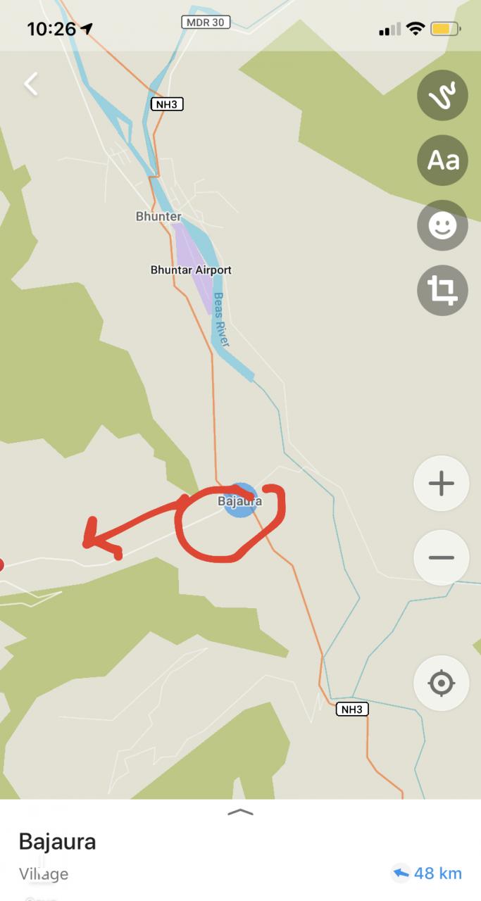 Деревня называется Bajaura и оттуда поворот на Kamand, где находится знаменитый индийский Институт технологий, точнее одно из его подразделений.