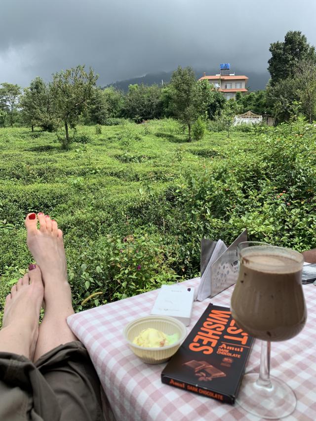 В Бире настоящий несезон. Белых туристов ровно три человека. Большинство кафе ресторанов закрыты, а там, где мы пировали еще в июне, в меню остались только базовые вещи типа яичницы да момо. В гостиницах тоже запустение. На лэндинг сайте день и ночь пируют парнокопытные. Муссонные дожди еще не прошли, ручьи журчат, чайные плантации зеленеют. Полный дзэн).