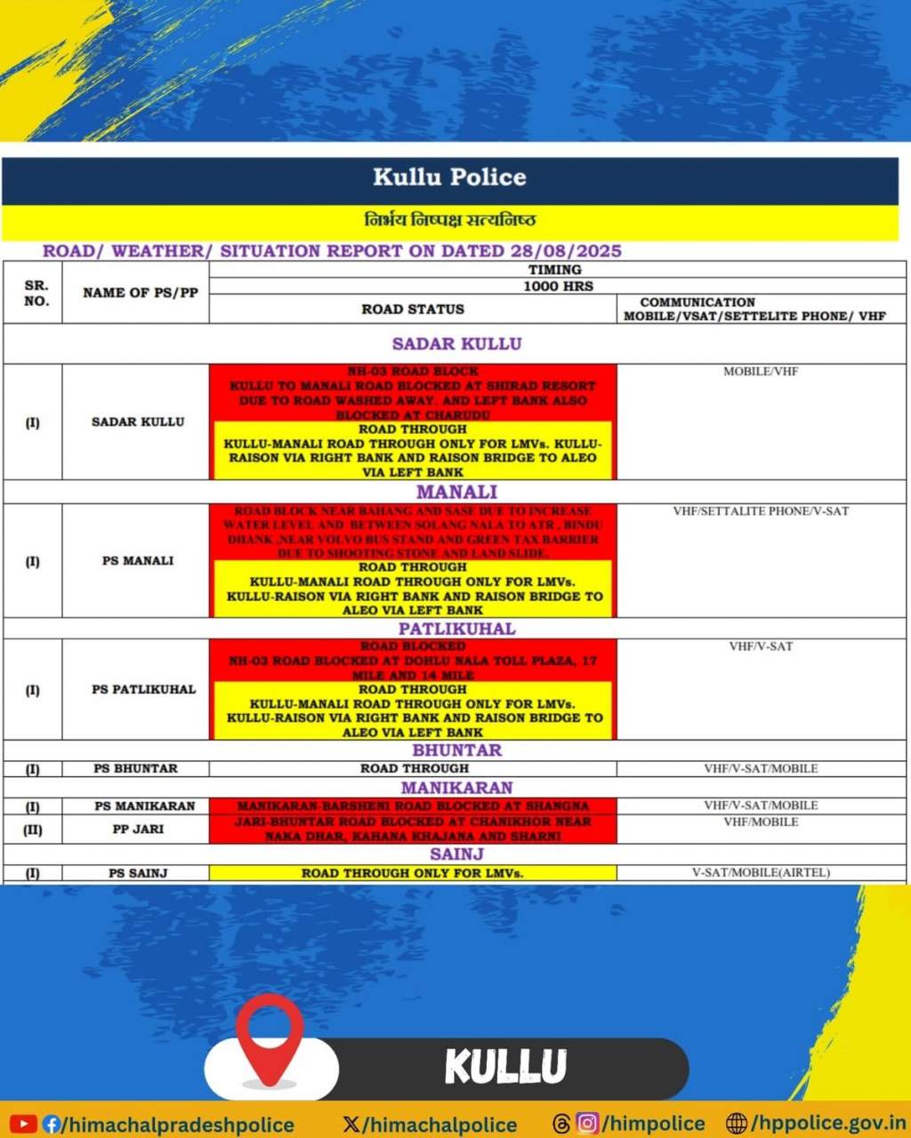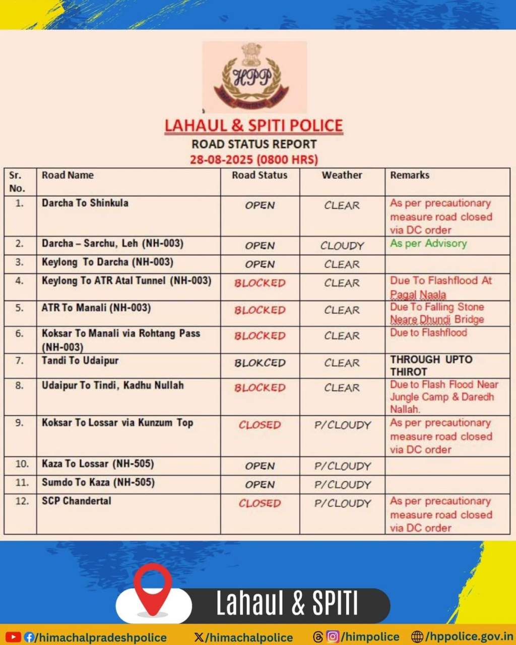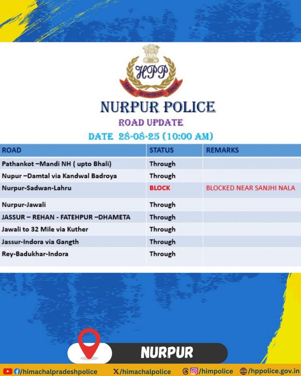 Из-за продолжительных дождей и сходов оползней заблокированы дороги в районах Биласпур, Манди, Куллу, Киннаур, Лахол-Спити и Нурпур.