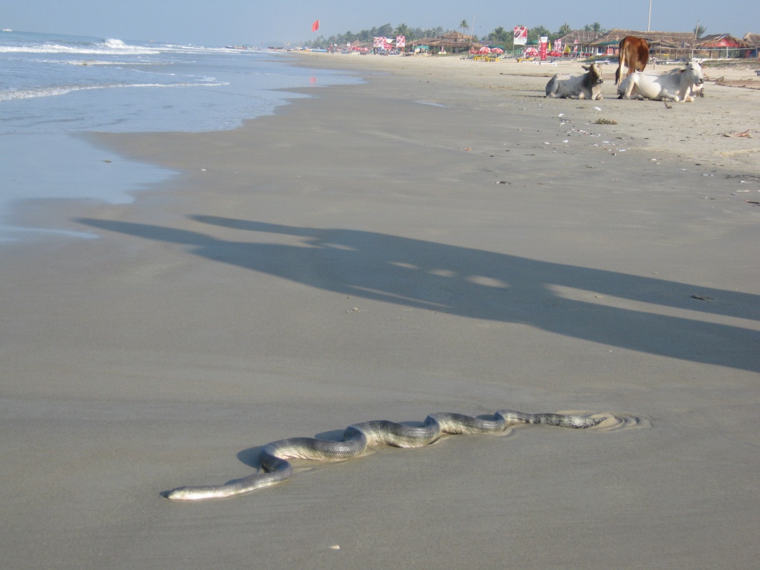 ...в этом сезоне практически на людях не появлялся - лазил по горам и джунглям...змей видел каждый день...к примеру , когда 2х-метровая кобра от вас улепётывает, то развивает нехилую скорость - более метра в секунду...если хотите повстречаться со змеёй , то после заката приходите на любое рисовое поле в низинке - там этого добра немеряно...помню , копал как-то ночью мусульманские монеты на одном поле у Рэди-форта , так страху натерпелся...фонарик не включишь - индусы палево увидят, а вокруг всё шуршит и шипит...жена моя , уж насколько отважная и та не утерпела...грит, к чертям твои медяки - врубай фонарь и бежим отсюдова...а я и сам рад , да до края поля далековато...больше ночью на поля не ходил...