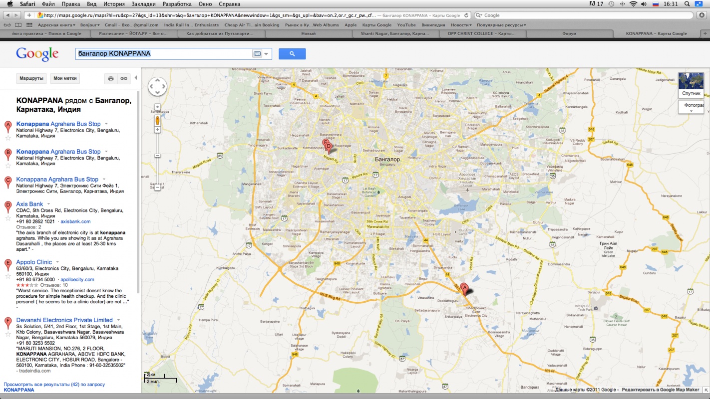 Спасибо! Что-то я до Гугловских карт и не додумалась.:) Пыталась найти инфо маршрута с остановками на сайте ksrtc.
