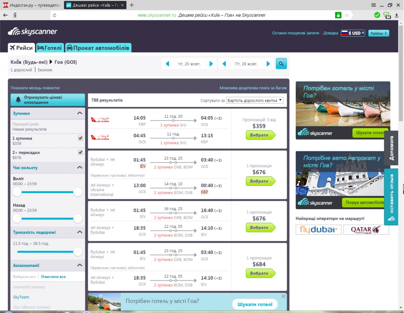 Южная Индия и Гоа › Стоимость билетов из Киева вна Гоа - от 350 долларов, период путешествия - с октября по март. |