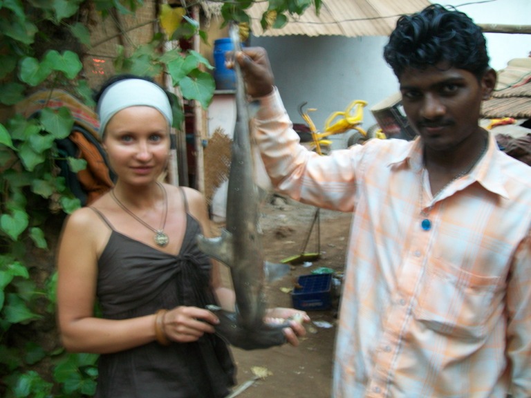 По поводу южного Гоа, в прошлом году на тамошнем Черепашьем месте, в кафе у Сантоша (Galgibaga), что-то подобное, но грамм на 100 меньше этих, составляла 120 рупий за штуку (правда, с церемонией выбора жертвы из всего улова, изменение цвета бедного существа в красный и с ритуальным танцом от владельца шека с деревянной киянкой в руках). В этом году за исполнение концерта он хочет уже 150. За 50 рупий он же готов на менее феерическое шоу с участниками весом до 250-300 грамм.