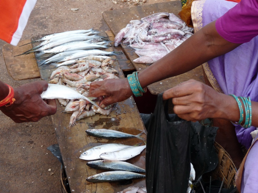 Поскольку платил за крабов я, внесу некоторую ясность. Эти крабики по полкило каждый. Цена килограмма крабов такого размера на местных рынках колеблется от 200-400 рупий (для индусов цена). На севере Гоа, в районе тамошнего Тартл бич ;-), можно спокойно торговаться до 250, в Мапусе, естественно, и до 150. За мелкие особи (до 100 грамм) начинается от 30-50 рупий (!) за кило, а далее, в зависимости, от размера цена стремится вверх.