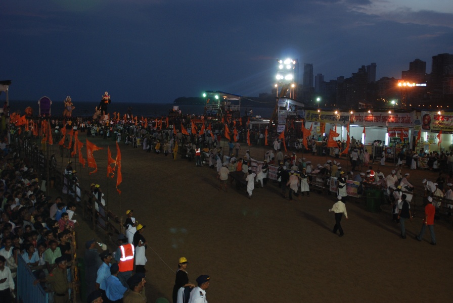 Сопровождающая идола экзальтированная публика КОТОРЫЙ ЧАС продолжала свои дикие танцы (как верно заметил один из индостанцев.ру, после чая-масала так не «позажигаешь», тут «колбасило» конкретно). В «едином порыве», в безумном экстазе, в трансе в конце-концов, танцоры всех возрастов и полов выделывали руками и ногами нечто, уже не поддающееся описанию. На подходе к берегу, при проходе мимо трибуны с В.И.П. гостями, музыка стихала, пляски прекращались, женщины, а порой и мужчины, начинали всхлипывать, а потом и в полный голос причитать по поводу предстоящей безвременной кончины «товарища Шри Ганешы»...